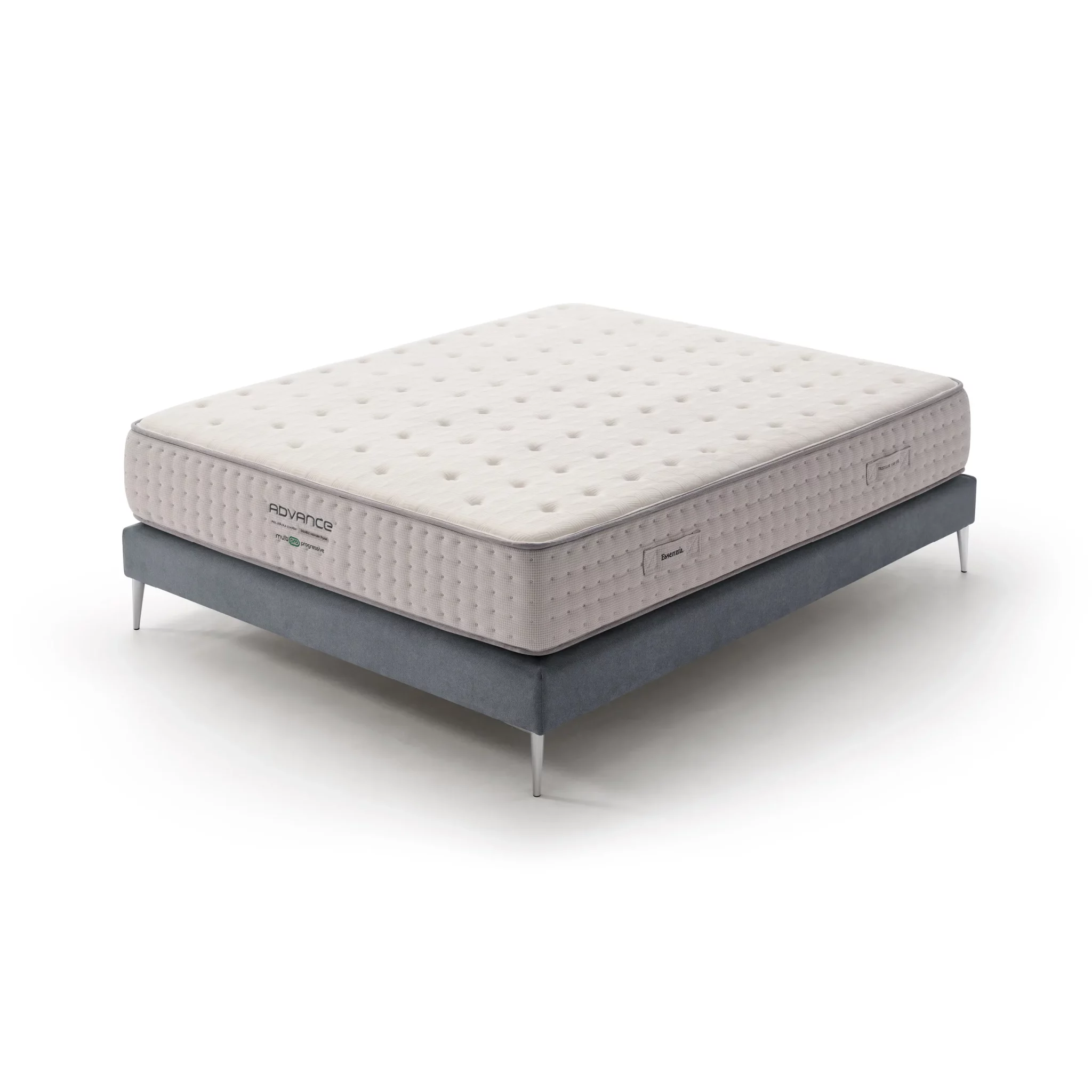 El núcleo del colchón Advance de Essenzia incorpora la tecnología Progressive con muelle ensacado Multipro, que presenta un diseño en panal único. Esta configuración asegura una adaptación uniforme a los movimientos del cuerpo y ofrece un nivel medio de firmeza, proporcionando el equilibrio perfecto entre soporte y comodidad.
