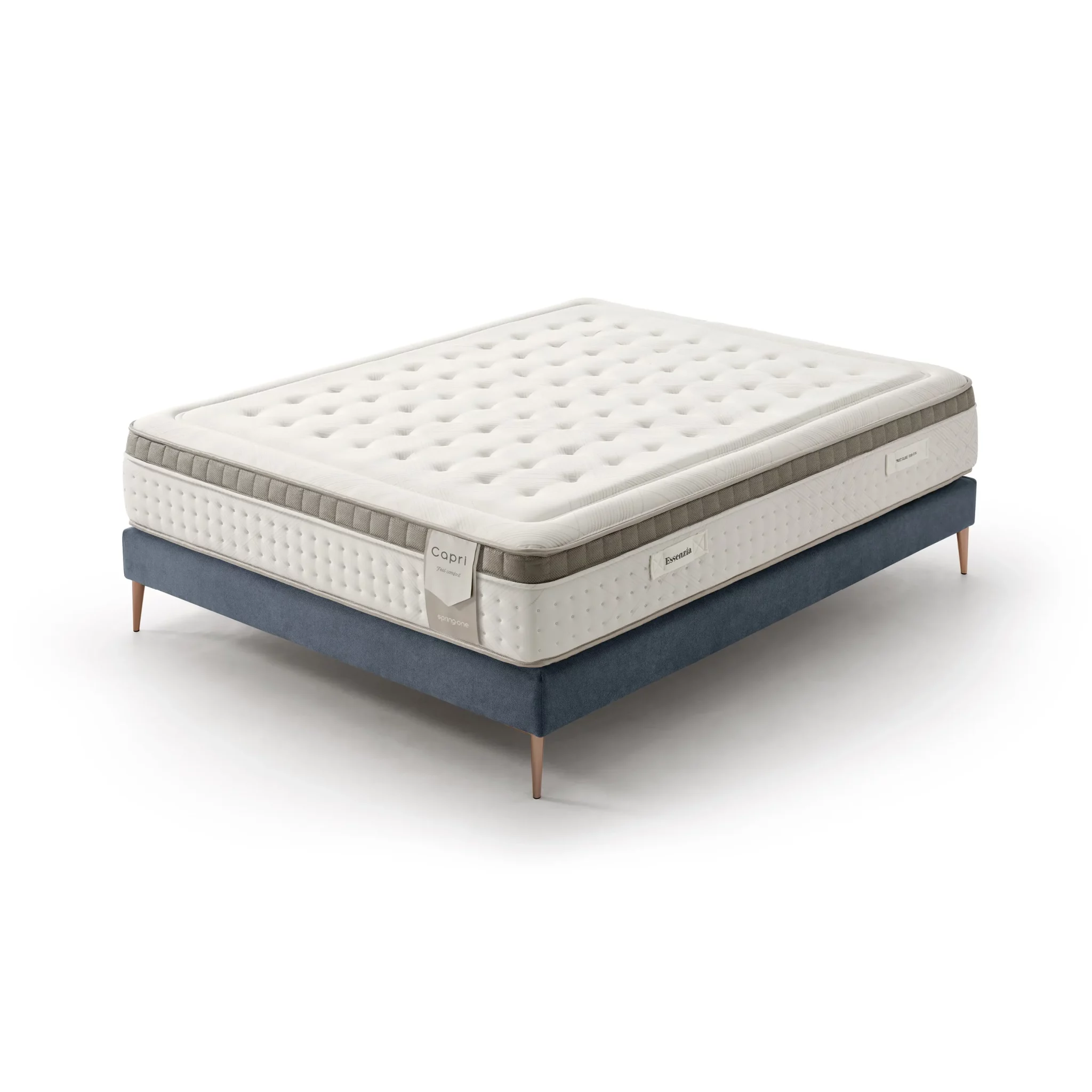 El colchón Capri de Essenzia es uno de los modelos más emblemáticos de la marca, ahora reinventado con un interior completamente renovado. Gracias a su capa superior de viscoelástica Memorydry y el muelle Multipro Progressive Titanio, el colchón Capri de Essenzia ofrece una experiencia de descanso avanzada, regulando la temperatura corporal y optimizando la adaptabilidad en cada movimiento.